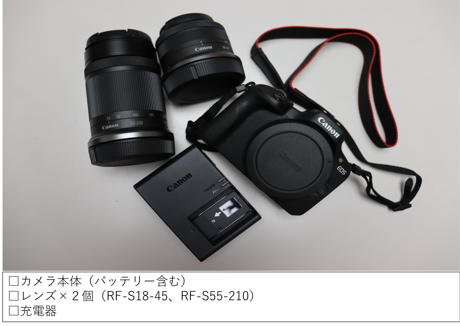 Canon製_EOS R100 ミラーレス一眼レフカメラです。 レンズ詳細「RF-S18-45」「RF-S55-210」をご用意しております。 |